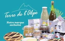 En plus des produits de grandes marques nationales, Sherpa commercialise des produits sous sa marque exclusive Terre de l’Alpe. Une marque créée par le réseau et qui met en valeur les produits régionaux, issus de l’agriculture et de l’élevage de montagne : Charcuterie et fromage de pays, produits fermiers et haut-alpins, fruits de vergers, confitures et biscuits de la région…